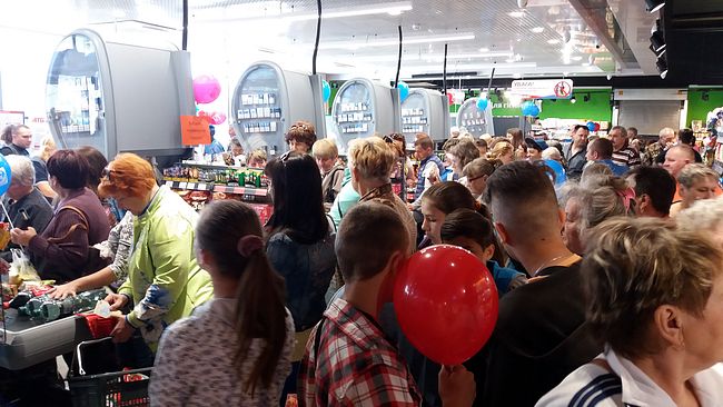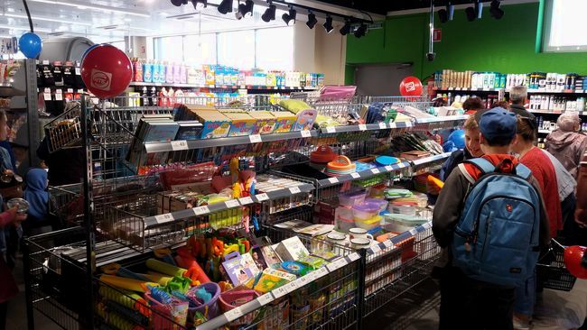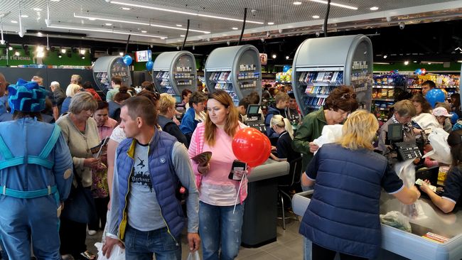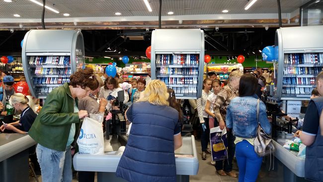Возле одной из касс предусмотрено обслуживание инвалидов и мам с детками на колясках.