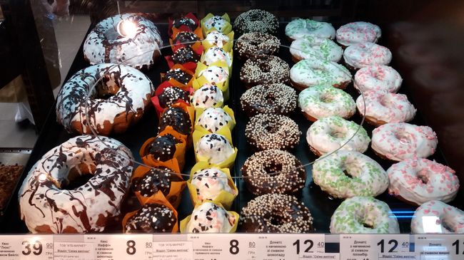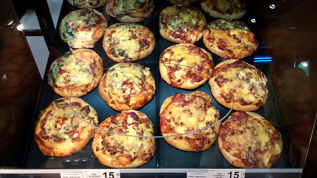 Выпечка находится за стеклом, которое предохраняет ее от пыли, а выбрать что-то на свой вкус можно через специальное окошко.