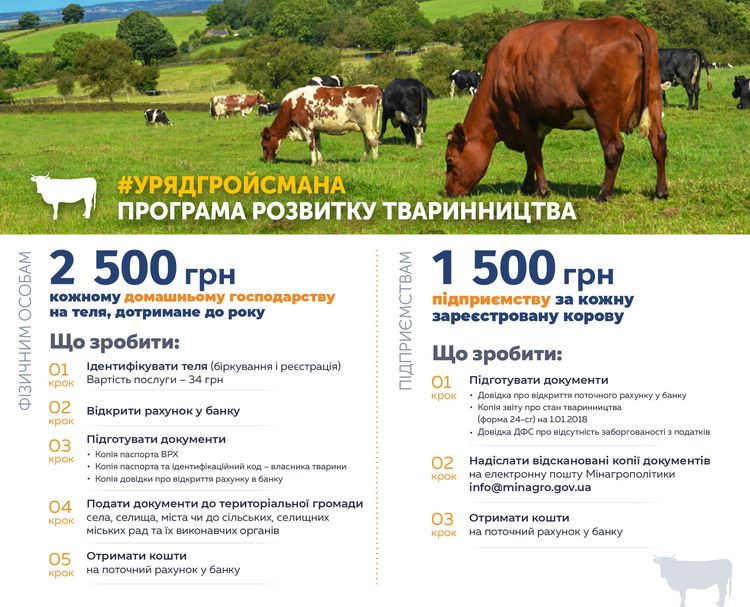 Передбачених у Державному бюджеті коштів цілком достатньо, аби державну допомогу отримав кожен, хто звернеться по неї. Зокрема, на допомогу по утриманню телят домогосподарствами держава виділила 700 млн грн., на розвиток фермерських господарств – 1 млрд грн.