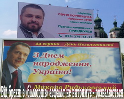 Ще не так давно на центральній площі та найбільших вулицях красувався на дорогих «білмордах» відомий «захисник народу» Микола Рудьковський. Крім ощасливлення земляків своїм благодійним фондом, він писав на сторінках своєї преси: «Будучи депутатом Верховної Ради, я завжди відстоював позицію розширення прав місцевого самоврядування, адже у «високих кабінетах» у Києві чиновники не можуть знати, які в кожного окремого міста чи села проблеми. Тому лише передавши сюди, на місця, і повноваження, і бюджетні кошти, можна швидко вирішувати найбільш нагальні проблеми».