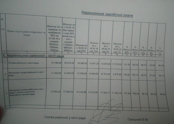 Роздруківка, яку таки надали сьогодні 15 червня Андрію Леоненку, в ній позначено скільки буде отримувати голова та його заступники в гривнях, якщо надбавка за високі досягнення у праці буде від 1 до 25%