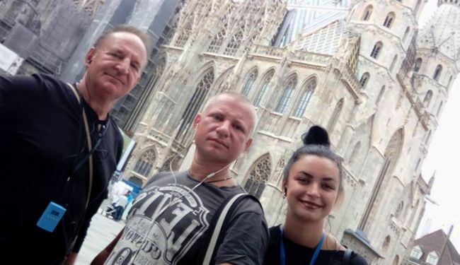 Слева направо: Григорий Горбачук, сын Алексей и внучка Даша в столице Австрии Вене