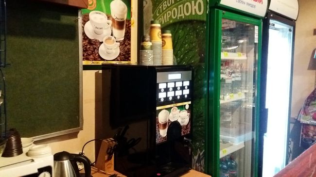 Также, в продаже разные напитки (минеральная вода, соки, чай, кофе), снеки, шоколад, мороженое и печенье.
