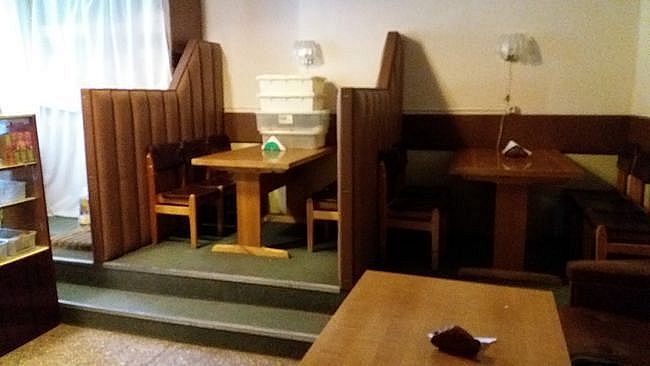 Но здесь еще и есть 3 столика для посетителей, за которыми можно перекусить в спокойной непринужденной обстановке. Но только перекусить. Горячих первых и вторых блюд нет.