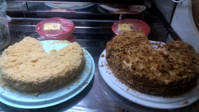 И даже торты - печеночный (10 грн./100 г), «Наполеон» и «Медовик» (12 грн./100 г).