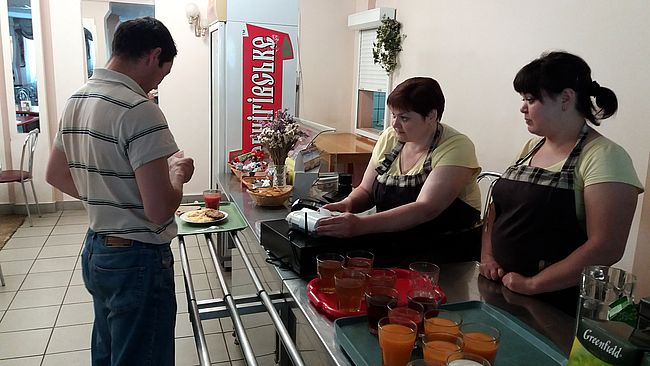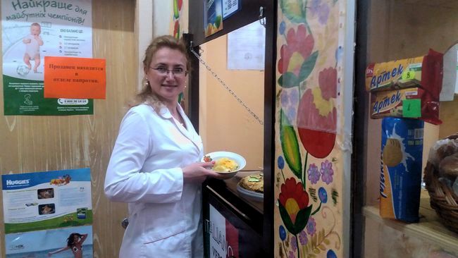 Несколько поваров готовят дома обеды для этой точки общественного питания. А предприниматель, открывший «Українську кухню», рано утром собирает еду и привозит в торговую точку.