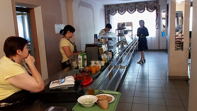 Сюда мы заглянули в пятницу после обеда, поэтому посетителей немного. А в будние дни, как рассказывают повара, обедает много народу, в день 220-230 человек. Как сотрудники облсовета, учащиеся медучилища, так и просто работающие и живущие рядом, горожане.