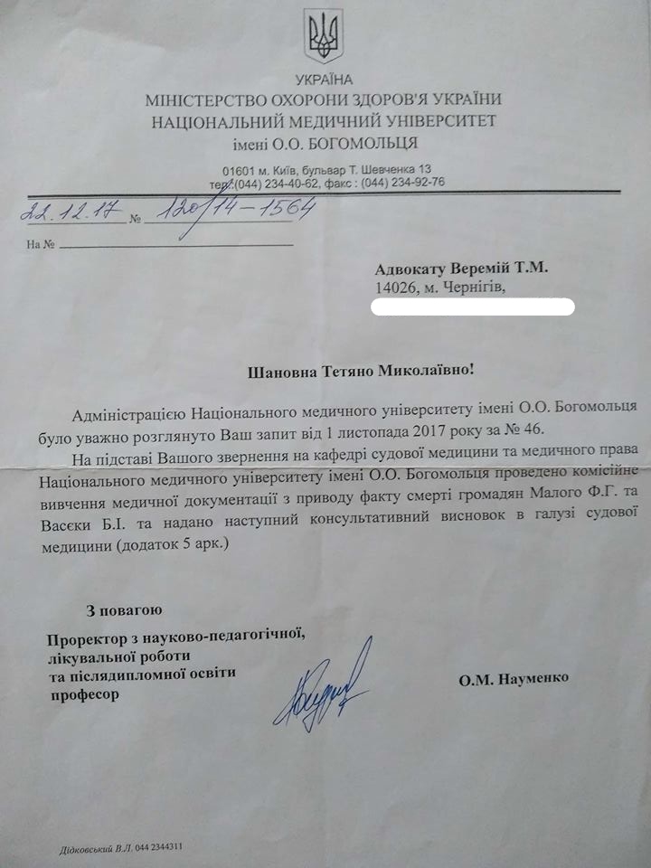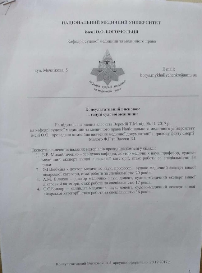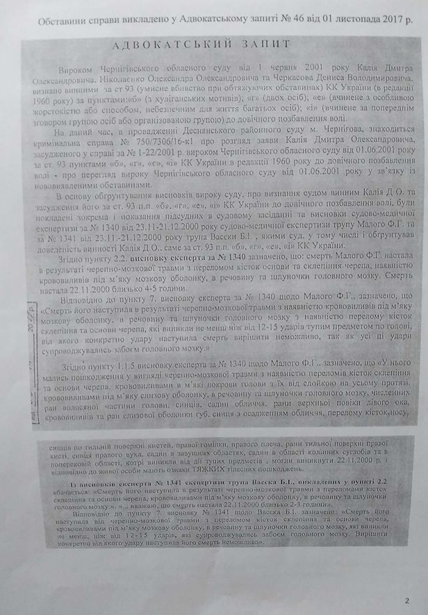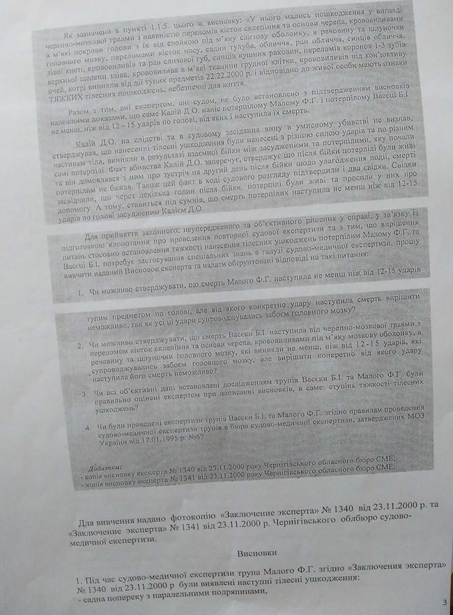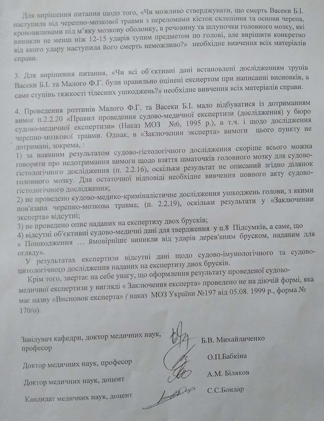 Дмитрий Калий, сообщил, что его адвокат отправил прошение о том, чтобы эксперты Киевского национального медуиниверситета им.Богомольца коллегиально пересмотрели материалы дела №75/1349 и ответили на поставленные защитой вопросы. В предварительном выводе, составленном 4-мя столичными экспертами, сообщается, что экспертизы, в деле проведены непрофессионально, с нарушением норм и требований закона.
