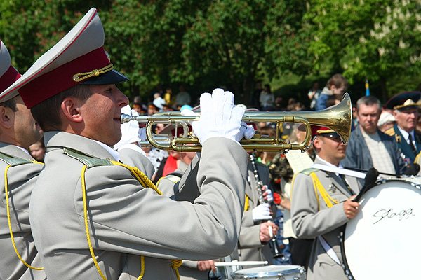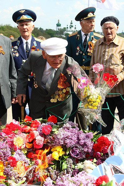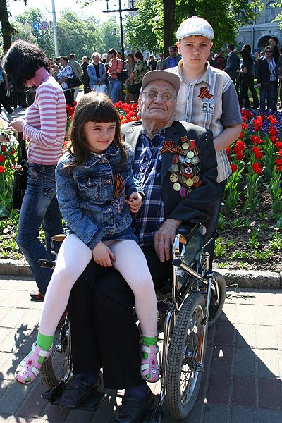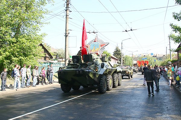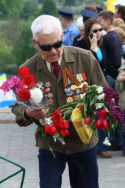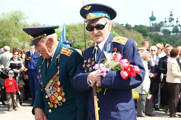 9 мая, в субботу в нашем городе отмечали 64-ю годовщину Победы в Великой Отечественной войне 1941-1945 годов. В Чернигове в честь праздника по центральным улицам прошло торжественное шествие. Впереди колонны ветеранов двигался бронетранспортер, на котором развевался красный флаг - символ флага Победы. За ним следовали военный оркестр, исполняющий песни военных лет, а далее - ветераны и высшие должностные лица Чернигова.