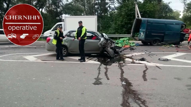 Це сталося сьогодні о 7 ранку. Зіштовхнулися легковик Geely та вантажна Газель. Як сказав прес-офіцер управління патрульної поліції в області Віталій Копистко, водій Газелі повідомив, що їхав в Чернігів. Перед мостом на зустрічну смугу виїхала Geely. Троє пасажирів легковика загинули, один в реанімації. Водій Газелі також в лікарні.