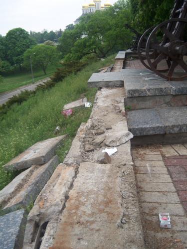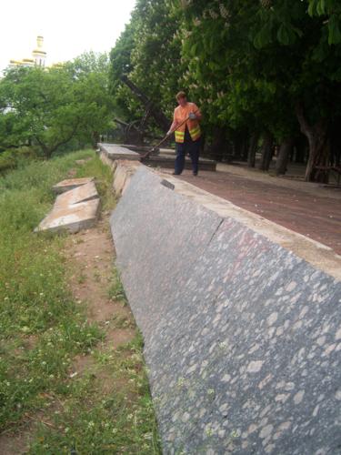 Нагадаємо, минулого разу в ніч з четвертого на п'яте травня вандалами було зірвано двадцять одну гранітну плиту. Деякі з них виявились розбитими. Тоді плити було поставлено на місце, а начальник комунального господарства Чернігова Вадим Антошин заявив, що на відновлення пошкодженої ділянки з міського бюджету доведеться витратити понад 50 тисяч гривень! Чернігівська міліція і досі не знайшла винних.