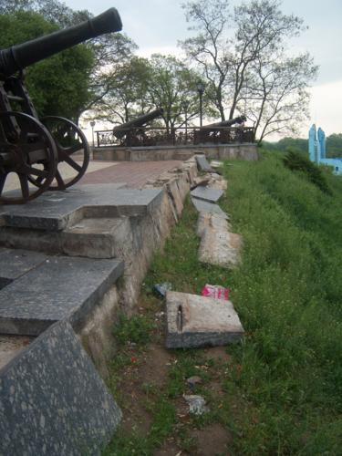 Частину древнього Валу знову осквернили, - як і минулого разу позривали частину плит. Трапилося це, за словами двірника, яка сьогодні зранку, 12 травня, в момент фотографування підмітала Вал, в ніч з восьмого на дев'яте травня. Отже лежать вони в такому вигляді вже четвертий день.