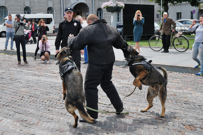 На Красной площади города полицейские со служебными собаками обезвреживали нарушителя, и здесь же можно было примерить амуницию полицейского и ознакомиться со спецтехникой и образцами вооружения. Так в Чернигове отметили 3-ю годовщину Национальной полиции Украины.