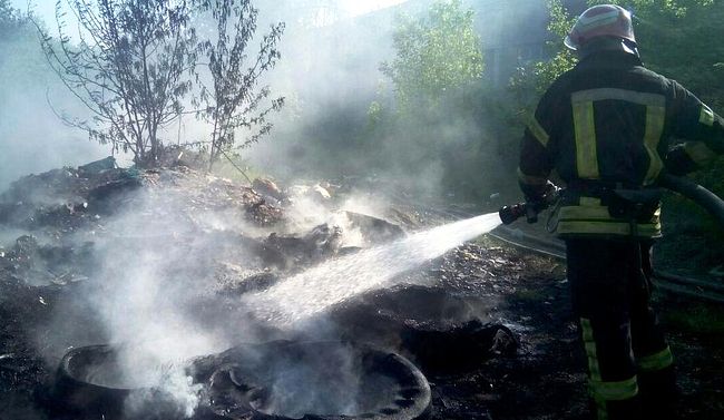 В мае здесь ко всему прочему, был пожар. Мы позвонили в пожарную службу, и сообщили о возгорании мусора и отработанных шин в цеху №3.