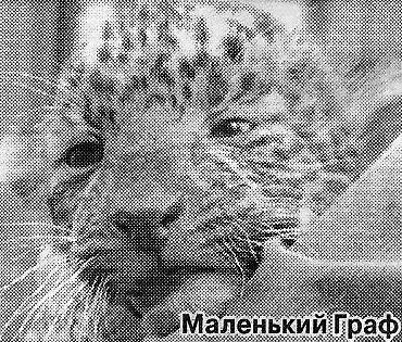 Малыш был слабеньким, беспомощным и слепым - именно такими появляются на свет красивые, сильные и грациозные хищники, способные развивать скорость до 60 км в час и без труда прыгать на 10 метров в длину. Его появлению радовались все, но особенно много поздравлений получил заведующий секцией хищников Геннадий Жуковецкий. Именно в его честь — Григорьевичем — назвали леопарда, приобретённого около двух лет назад.Теперь Григорьевич стал отцом. Мать - Багира. А малышу опекун зверей дал кличку Граф.