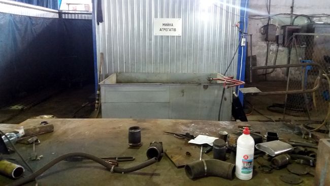 Участок мойки агрегатов оборудован таким образом, что вся грязь, масло сливается через специальные стоки в бетонные ванны.