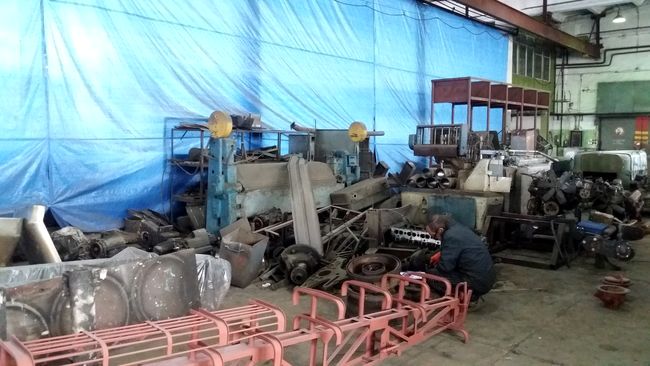 Надо отметить, что в огромном цеху, где производится ремонт военной техники, на удивление, чисто, царит абсолютный порядок. На вопрос: «А кто убирает?», Александр ответил, что и рабочие по окончании смены, и 2 раза в неделю - уборщица.