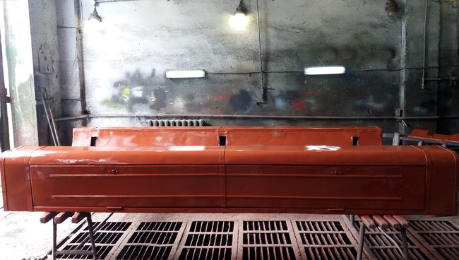Для покраски техники в цеху установлена специальная малярная камера, в которой стоят вытяжки с фильтрами на основе водяной очистки, то есть все выбросы оседают в воде. Воздух, в результате, остается чистым.