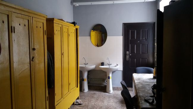 У рабочих есть три раздевалки, санузлы, душевые, мелкая бытовая техника для приготовления пищи (микроволновая печь, электрочайники).
