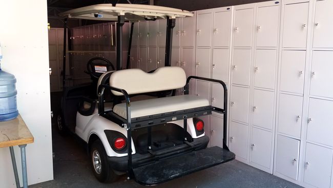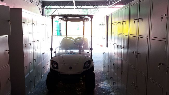 В этом сезоне на пляже «Золотой берег» появилась небольшая симпатичная машинка – гольфкар, которая находится под навесом рядом с камерами хранения на территории хоздвора.