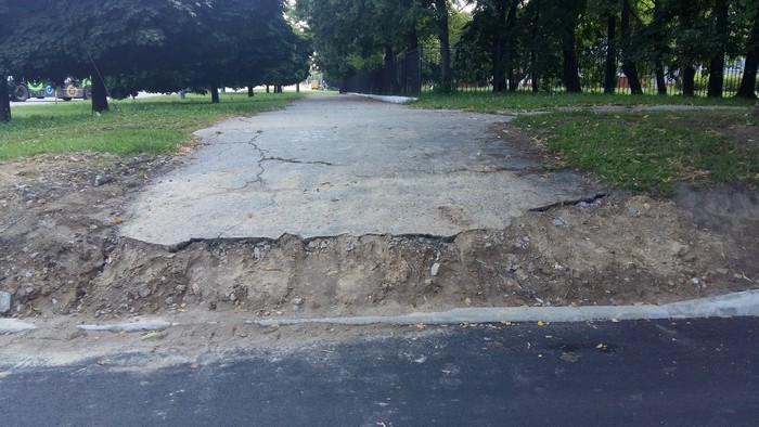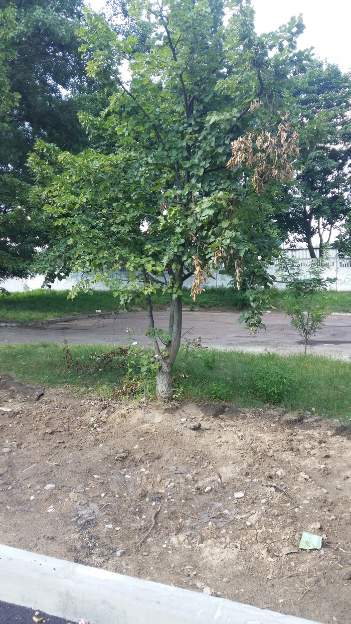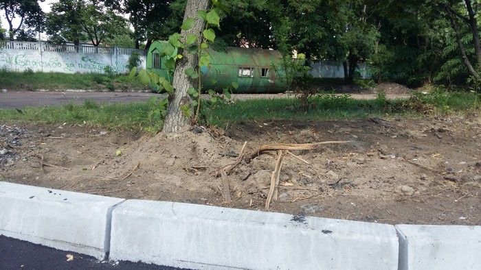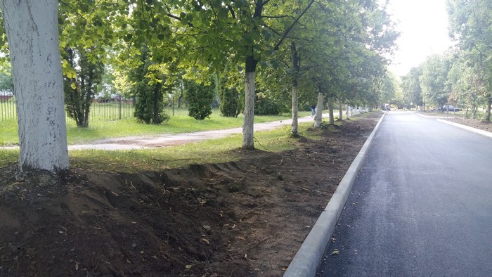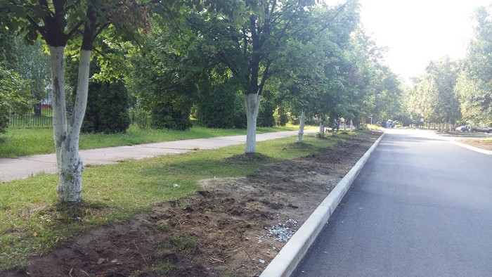 Также в ходе работ с обоих сторон нового бордюра был срезан дерновой слой земли шириной около метра, что задело корневую систему растущих у обочины лип. Несколько деревьев, возможно, по причине нарушения корневой системы начали усыхать.