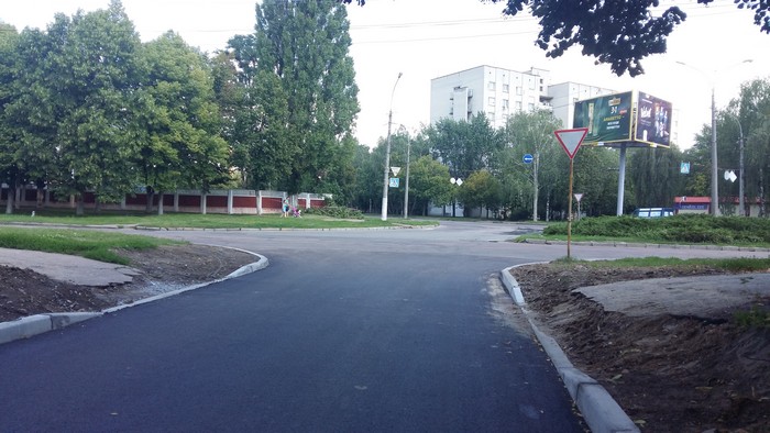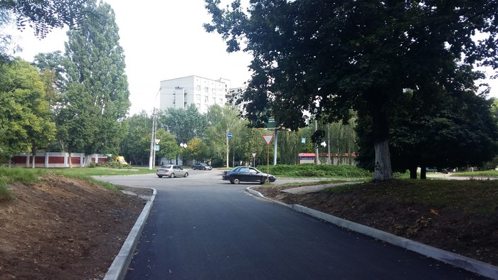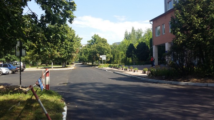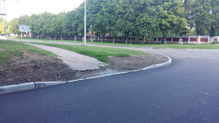 В начале июля стартовал ремонт участка дороги при въезде в городской Роддом. К пятнице 13-го его завершили. Теперь роженицам можно будет добираться к пункту назначения не по кочкам и ухабам, а по новому асфальту. К сожалению, как и при ремонте улицы Рокоссовского, не было уделено должного внимания переходам через отремонтированные участки, что видно на фото ниже.