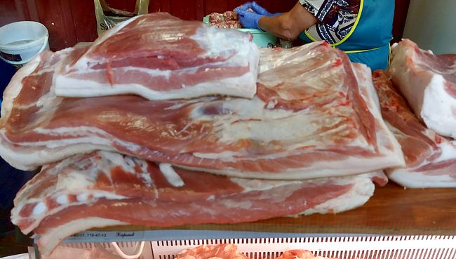 Цены на свиное мясо и сало в павильоне держатся на одном уровне (за 1 кг):