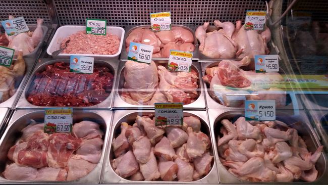 Цены на куриное и индюшиное мясо зависят от производителя. На рынке – представители ТМ «Чебатурочка» и «Наша Ряба».