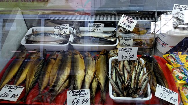 В рыбном павильоне всегда довольно большой выбор свежезамороженной, соленой и копченой рыбы закрылся.