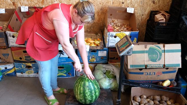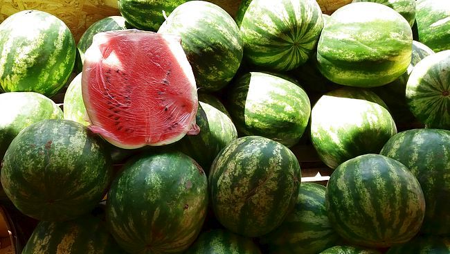 Арбуз 5 грн., можно купить не целиком, а половину или четверть.