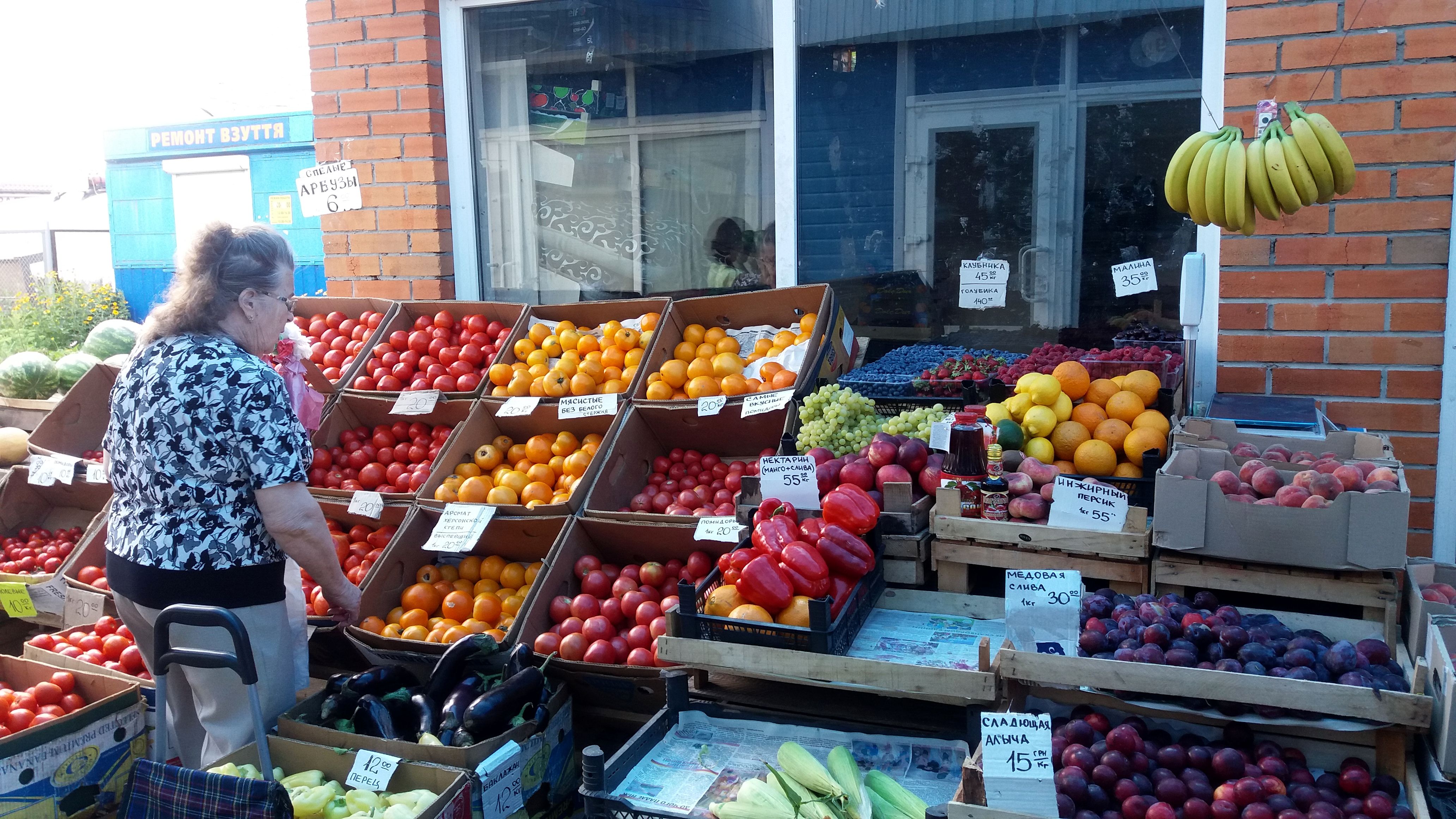 В последнем ряду открылся новый павильон с аккуратно выложенными фруктами и овощами. Но, как обычно, много покупателей рядом, в давно полюбившейся отличным обслуживанием и разнообразием товара, торговой точке.