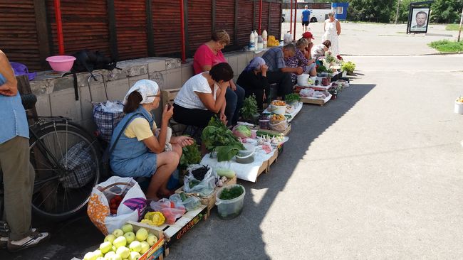 От остановки «Седам» до самого рынка вдоль парапетов «растянулась» стихийная торговля: жители близлежащих сел продают, выращенные на своих огородах фрукты, овощи, зелень, собранные в лесу ягоды. Абрикосы, поречки, смородину продают в ведрах, так как многие хозяюшки начали варить варенье.