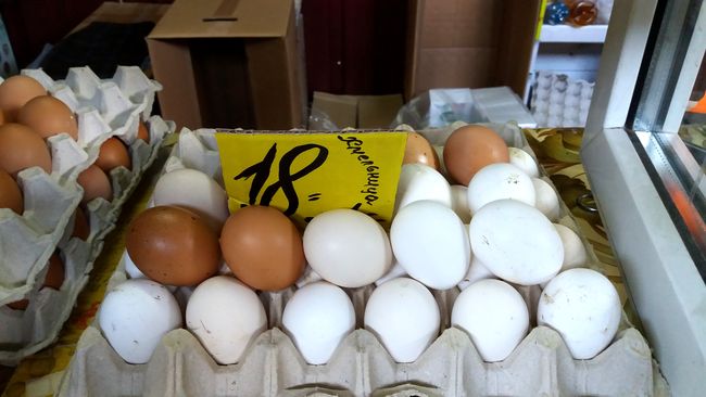 Цены на куриные яйца за десяток колеблются от 18 до 27 гривен в зависимости от поставщика, категории и массы, и тоже вот уже 2 месяца держатся на одном уровне: