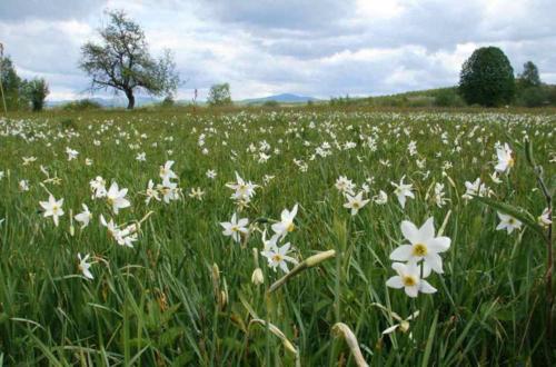 Это уникальный объект - узколистные нарциссы в таком количестве растут лишь в Альпах и на Балканах, но там этот горный цветок растёт на высоте 1800-2000 метров над уровнем моря! В долинах же нарциссы больше нигде не встречаются.