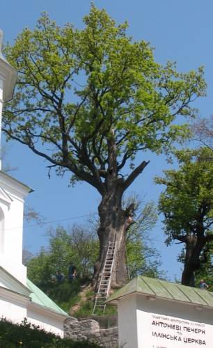 На прошлой неделе старинное дерево над Антониевыми пещерами «полечили» специалисты Киевского эколого-культурного центра. По словам учёного секретаря Национального заповедника «Чернігів стародавній» Сергея Чернякова, именно сотрудники заповедника взяли опеку над деревом-богатырем. Обнаружилось, что для его спасения необходима срочная и квалифицированная помощь.