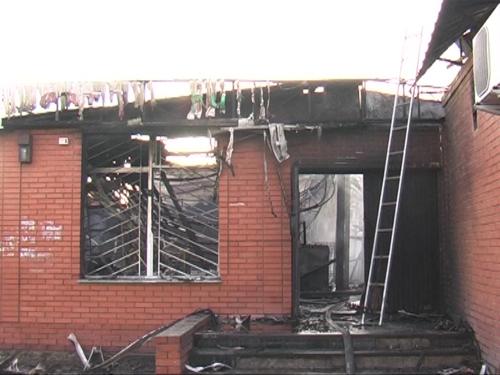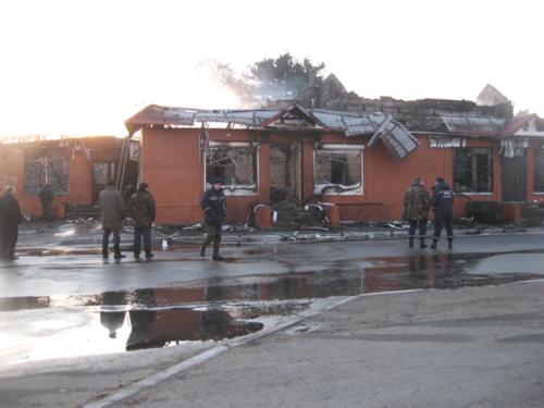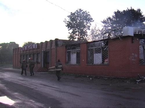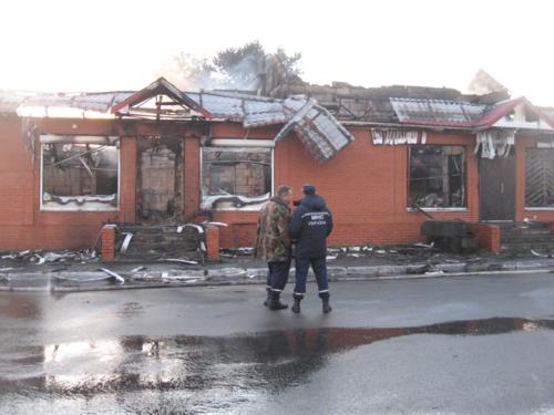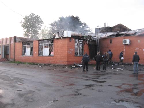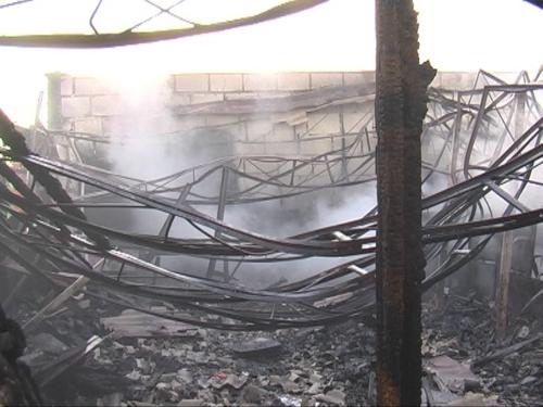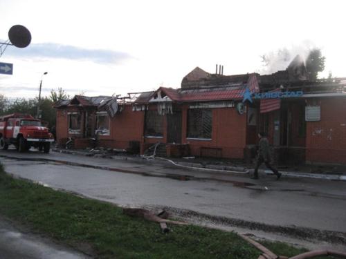 Вогнем знищено дах комплексу на площі понад 320 метрів квадратних, матеріальні цінності у приміщенні кафе "Волошки", магазинах "Стиль", "Автозапчастини" , а також згорів орендований зал ігрових автоматів, роботу якого декілька днів тому було заборонено. Пожежею частково пошкоджено покрівлі магазинів "Київстар" та "Меблі". Розміри матеріальних збитків встановлюються.