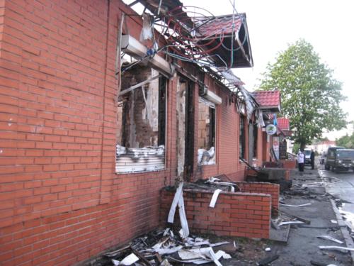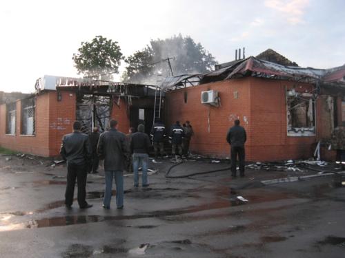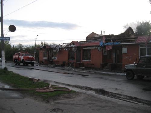 14-го травня у місті Носівка, що на Чернігівщині, на перехресті вулиць Суворова та Святотроїцька загорілася будівля комплексу з восьми приватних магазинів загальною площею 850 квадратних метрів. Ще 01:02 власнику "Автозапчастин" на мобільний телефон надійшло повідомлення про спрацювання охоронно-пожежної сигналізації. А о 01:05 патруль загону самооборони, який складається із місцевих підприємців, помітив пожежу в будівлі комплексу. Чоловіки одразу ж викликали рятувальників.