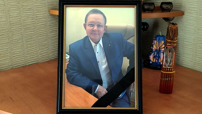 На столе - ежедневник, папка с договорами, памятный сувенир от жителей родного села, подаренный за неделю до смерти и фотография в рамке, на которой запечатлены дорогие его сердцу люди и места.
