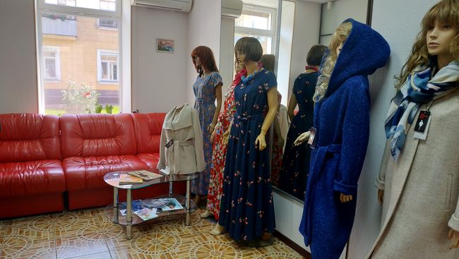 Второй магазин находится в центре города по улице Коцюбинского, 52. Здесь представлен идентичный ассортимент. 3 года назад, когда магазин открылся, в продаже были только пальто. Позже фабрика начала шить платья и ассортимент расширился. Здесь уже есть и постоянные покупатели, которые периодически приходят за обновками.