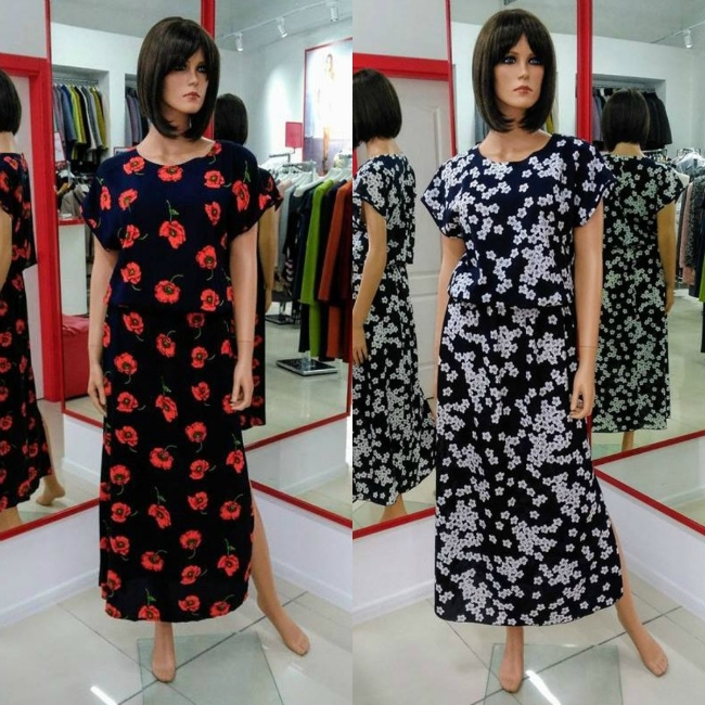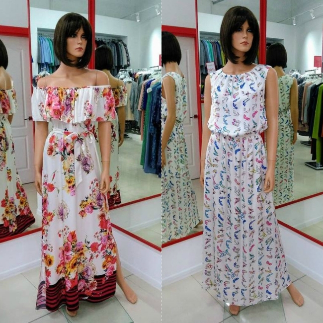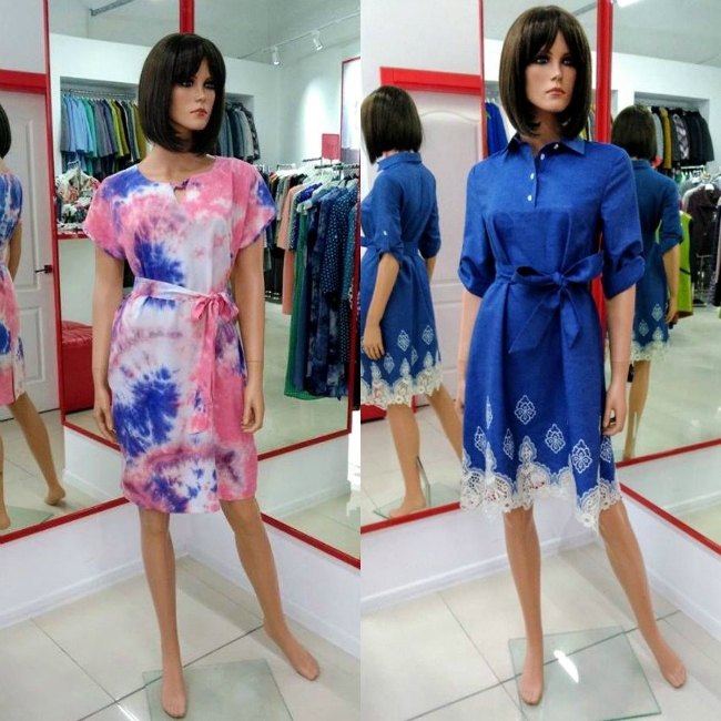 В ассортименте – многообразие летних сарафанов и комбинезонов, коротких, средней длины и в пол, свободного покроя и приталенных платьев, сшитых из легких тканей, приятных телу (поплин, сатин, штапель, лен, крэш с добавлением синтетики).