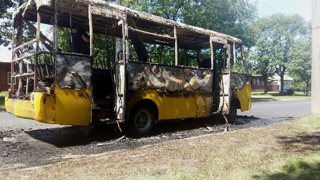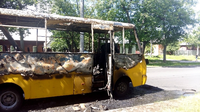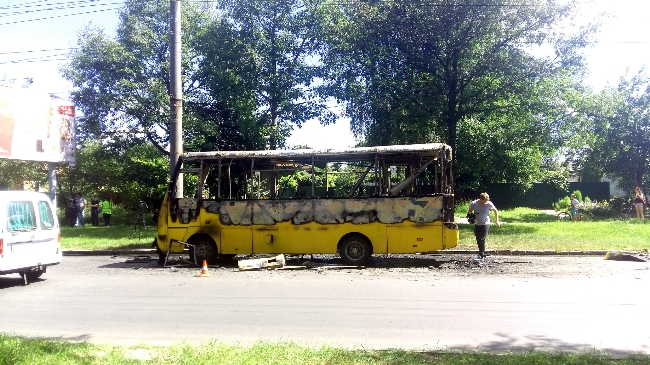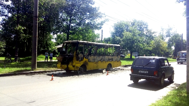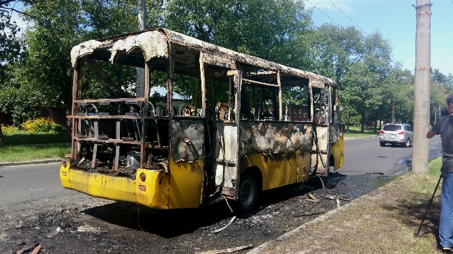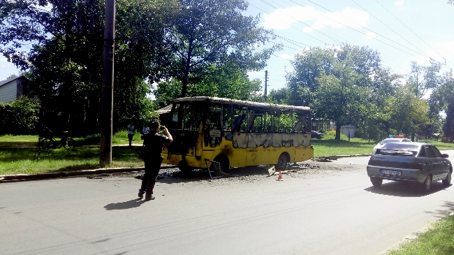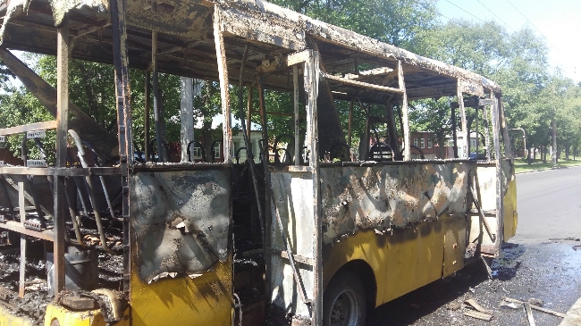 Подробности выясняются. Сгоревший автобус был 12-го маршрута, марки IVAN, СВ3283АА, по предварительной информации никто не пострадал.