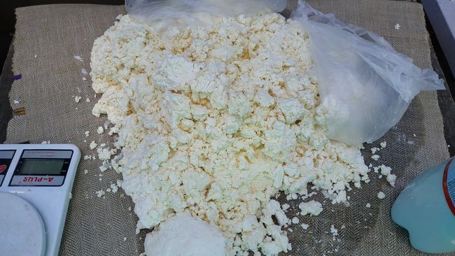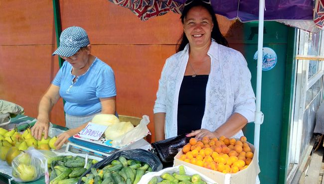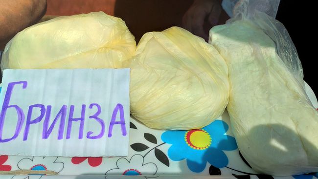 Бывшая учительница школы с 25-летним стажем - Юлия Ивановна Литвин из Новоукраинки уже много лет изготавливает очень вкусную брынзу. Секретом ее рецептуры еще в 1993 году с ней поделилась армяно-азербайджанская семья. Сегодня она привезла продавать не только брынзу, но и огурчики, абрикосы, морковь.