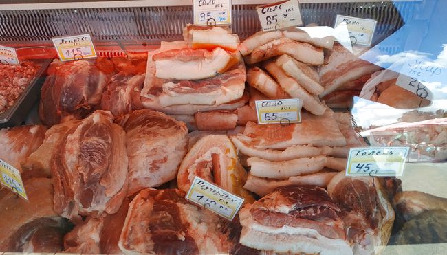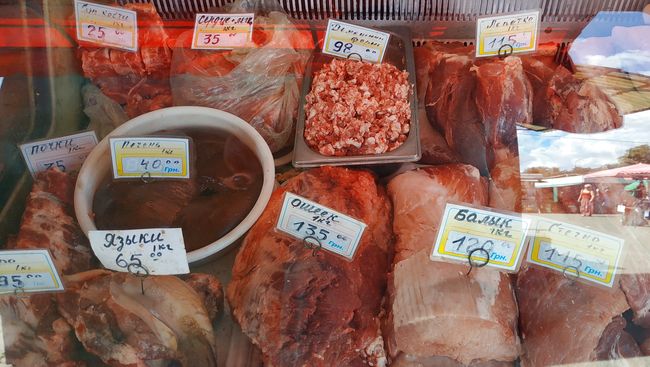 Как всегда, большой выбор свежего свиного мяса у Валентины Ивановны Федоренко. Цены на свинину и субпродукты в среднем по городу держатся на одном уровне.