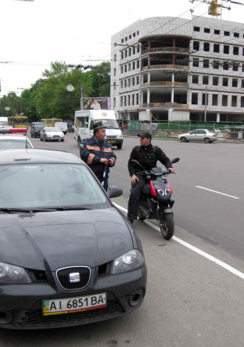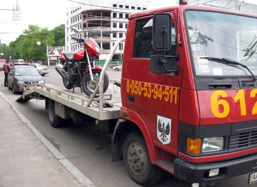 …Без нарушителей тоже не обошлось. На эвакуатор был «водружен» красный мотоцикл «Хонда». Его водитель, по каким-то причинам нарушил требования ч.5 ст. 121. Номерной знак его транспортного средства (киевская регистрация) был заклеен бумажками. Это послужило поводом для остановки. Далее оказалось, что документы на мотоцикл отсутствуют. И как следствие – протокол об админнарушении и эвакуация мотоцикла. Это единственный «улов» инспекторов ГАИ за 15 мая.