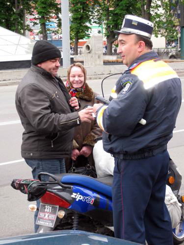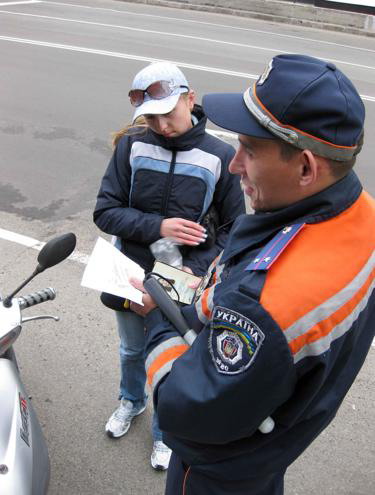 В пятницу, 15 мая инструктаж нарядов Госавтоинспекции, заступающих на патрулирование, проходил на территории областного ГАИ. Проводил его заместитель начальника ГАИ области Виталий Горбатко майор милиции. К несению службы в этот день привлекались как работники городской, так и областной Госавтоинспекции. При инструктаже особое внимание своих подчиненных майор Горбатко обратил на «нюансы работы» со скутеристами. Поскольку ст.130 КУпАП (управление ТС в нетрезвом виде) предусматривает и такой вид наказания, как оплатное изъятие транспортного средства, то для последующего исполнения решения суда исполнительной службой, очень важно, чтобы в протоколе был четко зафиксирован номер агрегата, на котором было совершено правонарушение. Хотя все сотрудники Госавтоинспекции, заступавшие на патрулирование в этот день, несут службу уже не первый год, изменения в украинское законодательство вносятся частенько, поэтому инструктаж лишним не бывает. Проинструктировались – и «по коням»! Каждый патруль убыл для наблюдения за дорожным движением в четко определенное место.