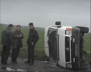 17 травня о 9 ранку на 107 км автодороги Прилуки-Пирятин поблизу села Тополя Прилуцького району 26-річний водій автобуса «VOLKSWAGEN», мешканець Полтави, рухаючись зі сторони Пирятина в напрямку Прилук під час дощу на вологій ділянці автодороги не врахував дорожню обстановку, не вибрав безпечної швидкості руху, внаслідок чого з'їхав на праве узбіччя дороги, де перекинувся.