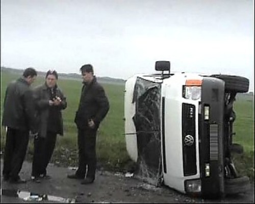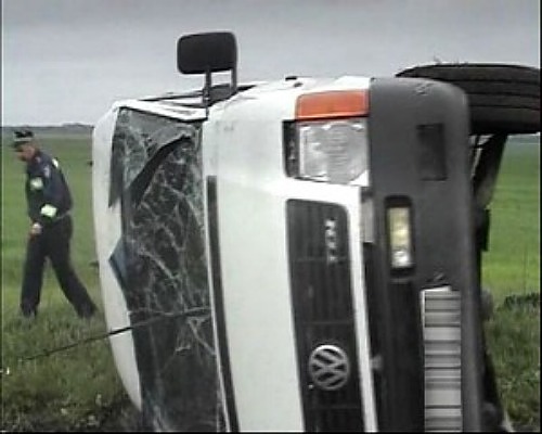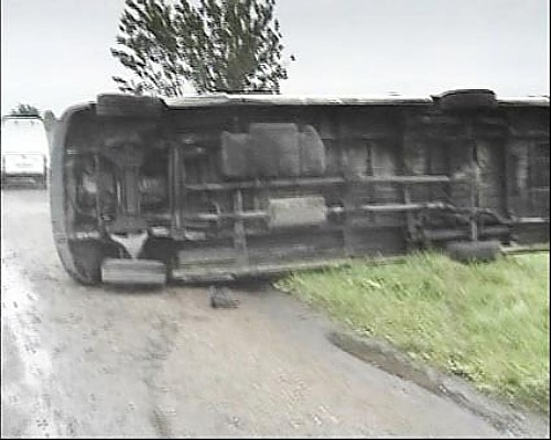 17 мая около 9 утра на 107 км автодороги «Прилуки-Пирятин» вблизи села Тополи Прилуцкого района автобус «VOLKSWAGEN», которым руководил 26-летний житель Полтавы, двигаясь со стороны Пирятина в направлении Прилук во время дождя на влажном участке автодороги съехал на правую обочину дороги, где перевернулся.