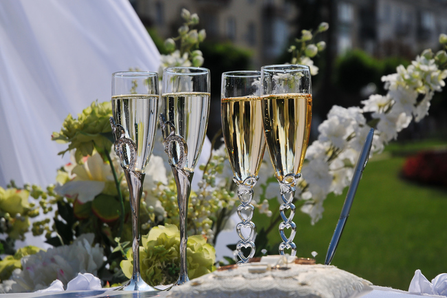 В сквере Богдана Хмельницкого возле большого фонтана звучит саксофон. На столике возле красочной арки – бокалы с искрящимся шампанским и обручальные кольца. Здесь же расставлены белые стулья для гостей. Все готово для проведения свадебной церемонии.