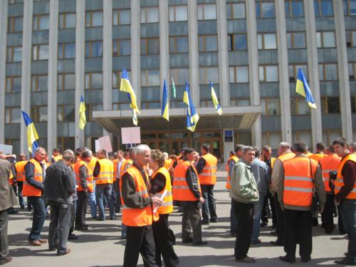 Рано прокинулися сьогодні, 19 травня, працівники дорожніх служб, але не на роботу, а...на війну. З дев'ятої години ранку працівники ЗАТ “Шляхово-будівельне управління-14”, яких зібралося близько 200 чоловік, пікетували офіс обласної Служби автомобільних доріг, і, дочекавшись чергових обіцянок від керівництва, перейшли під Чернігівську обласну раду.
