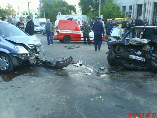 18 мая, в 19.45 возле магазина "ЭКО-маркет", что по ул. 1 Мая, столкнулись "Фольксваген" и "Опель". Водителя "Фольца" из салона машины "вырезали" сотрудники МЧС. Он был без сознания. Его увезли в больницу. Пассажиры "Опеля" (семейная пара) живы, благодаря тому, что сработали подушки безопасности.